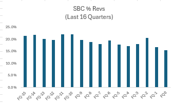 Employees have cheered on Aneel’s return, specifically calling out the reduction in SBC as a negative. The historical compensation structure for the entire SaaS space relies on heavy SBC and price appreciation to bail them out. Returning to that would not be positive for the stock!